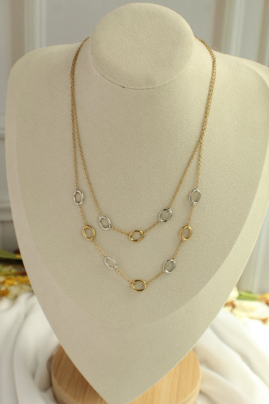 50% de descuento en cadena con óvalos de plata y oro