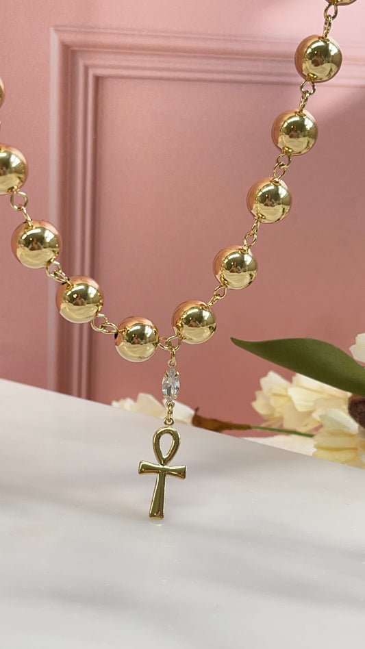 Double Colombian Necklace with Gold Heart Pendant | Handmade