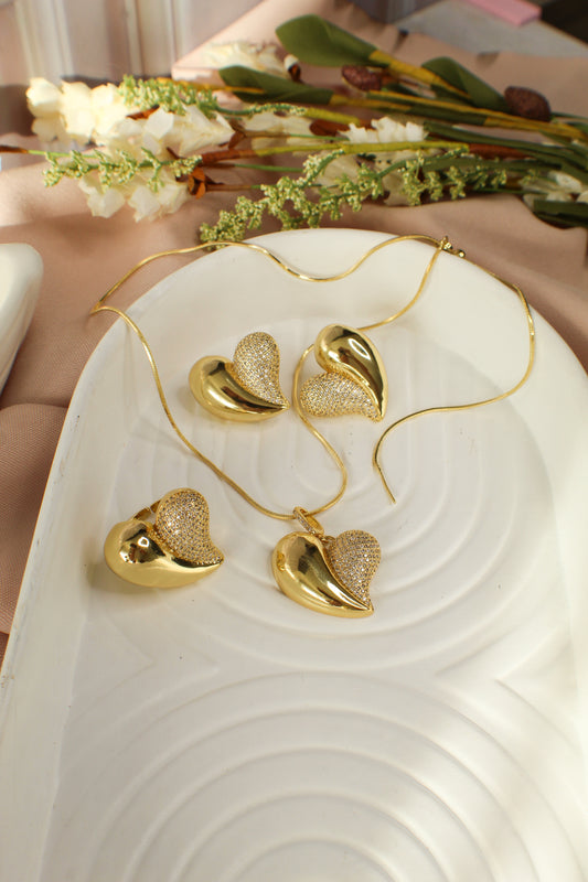Love & Sparkle - Earrings, Ring and Chain Necklace Set