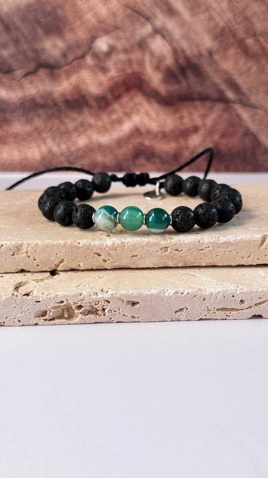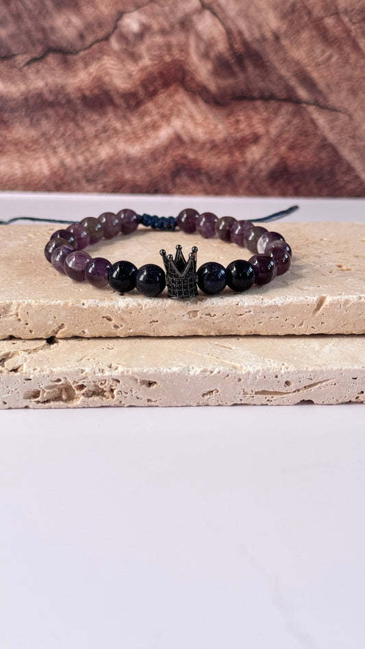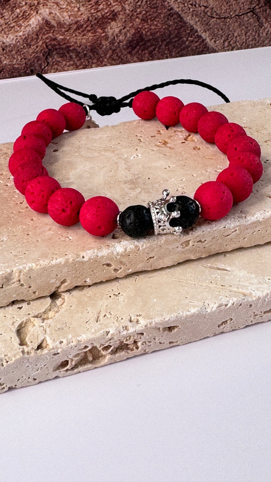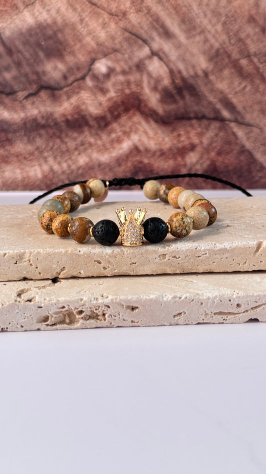 Crown Charm with Lace Agate and Lava Stone Bracelet